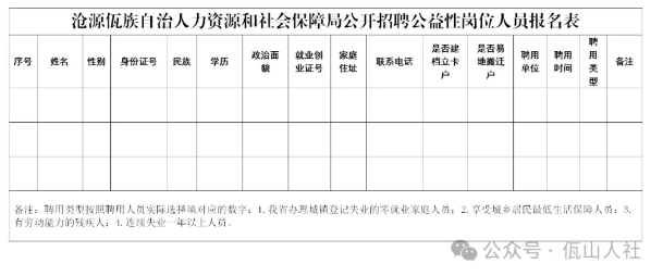 (二)報(bào)名地點(diǎn):滄源佤族自治縣人力資源和社會(huì)保障局三樓辦公室。