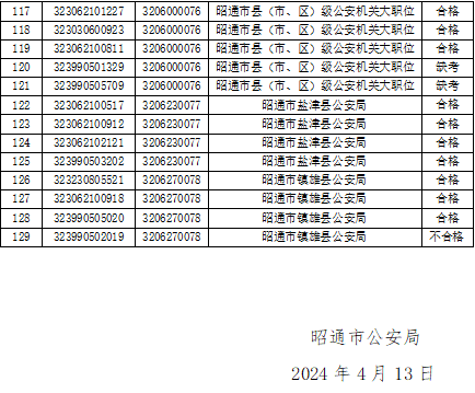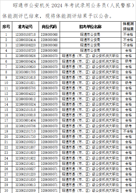 昭通市公安機關(guān)2024年考試錄用公務(wù)員 (人民警察)體能測評結(jié)果公告