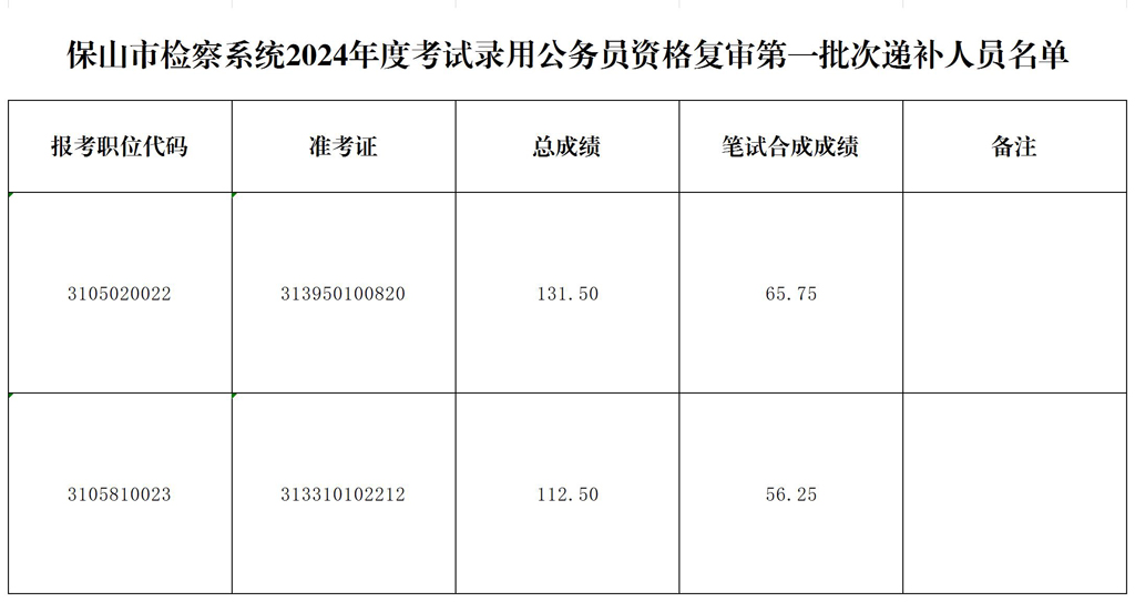 附件:保山市檢察系統(tǒng)2024年度考試錄用公務(wù)員資格復(fù)審第一批次遞補(bǔ)人員名單