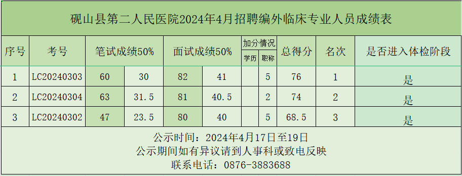 2024年4月招聘編外臨床專業(yè)人員成績公示