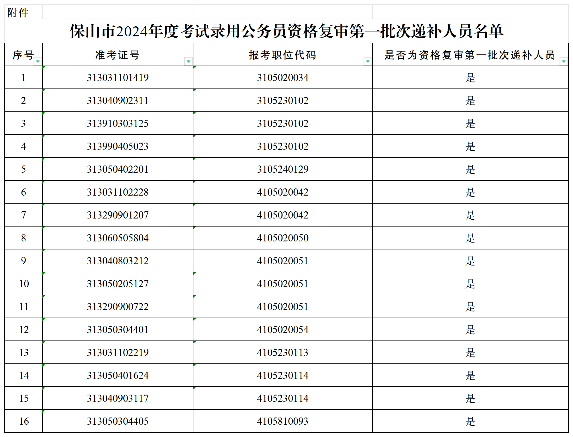 附件:保山市2024年度考試錄用公務(wù)員資格復(fù)審第一批次遞補(bǔ)人員名單