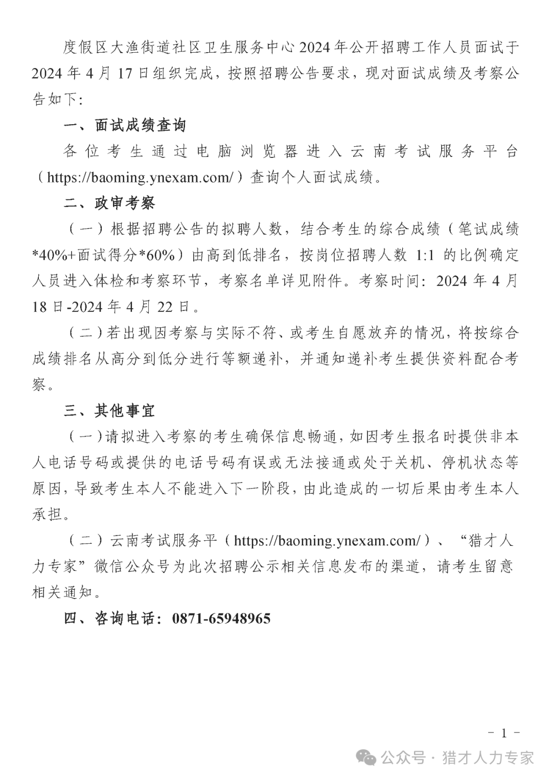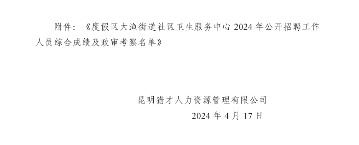 2024年公開招聘工作人員面試成績及政審考察公告
