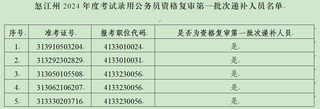 怒江州2024年度考試錄用公務員資格復審第一批次遞補有關(guān)事宜的通知