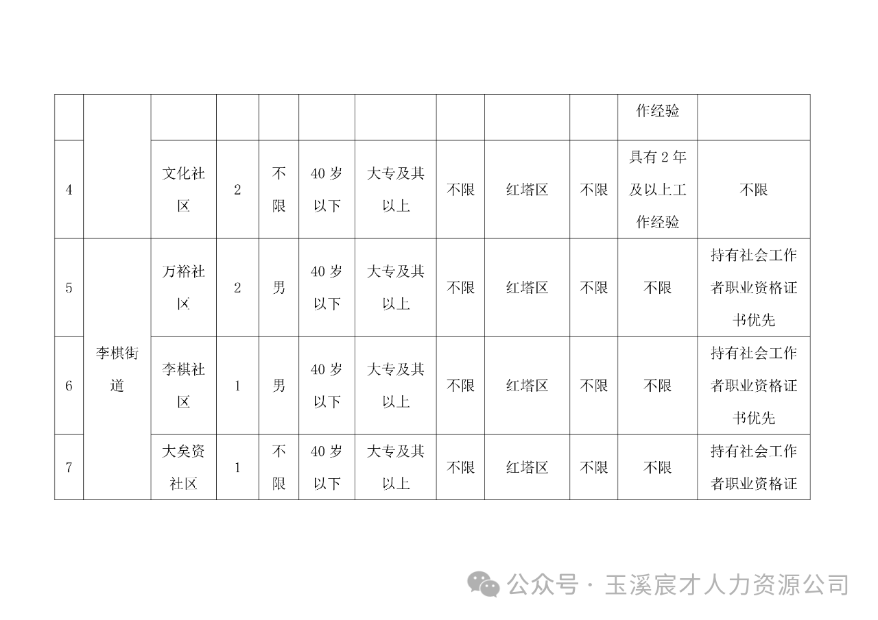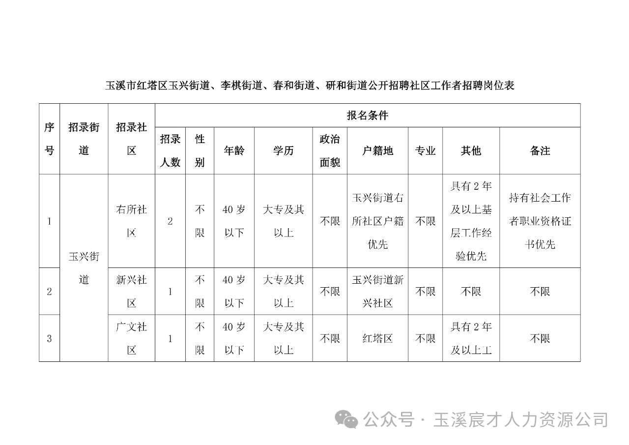 詳見《玉溪市紅塔區(qū)街道玉興街道、李棋街道、春和街道、研和街道招聘社區(qū)工作者崗位表》