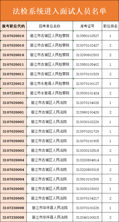 根據(jù)云南省2024年度考試錄用公務(wù)員工作的總體安排,現(xiàn)將麗江市法檢系統(tǒng)2024年度考試錄用公務(wù)員(助理職位)面試及后續(xù)工作有關(guān)事項(xiàng)公告如下: