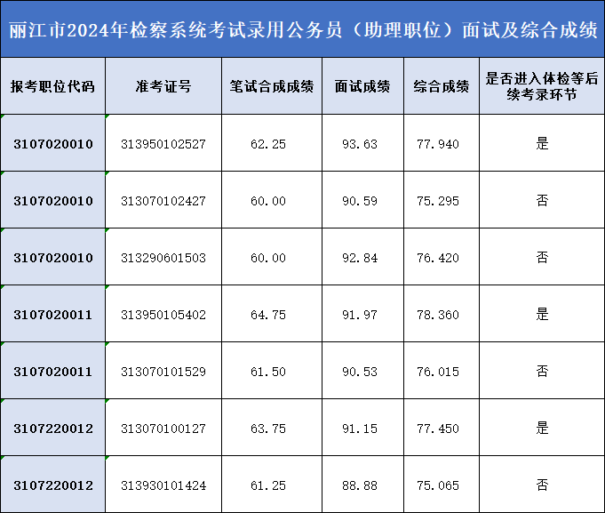 麗江市檢察系統(tǒng)2024年度考試錄用公務(wù)員(助理職位)成績(jī)公布