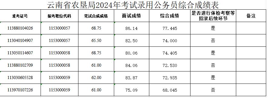 附件:云南省農(nóng)墾局2024年考試錄用公務員綜合成績