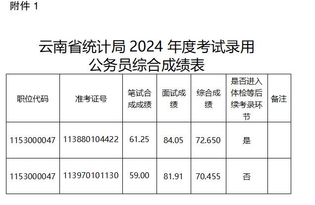 云南省統(tǒng)計(jì)局關(guān)于公布2024年度考試錄用公務(wù)員綜合成績(jī)及后續(xù)工作安排的公告