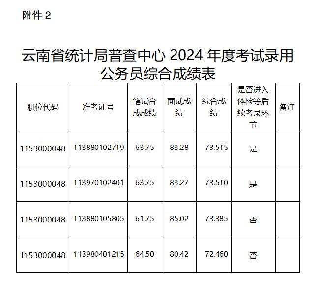 2.云南省統(tǒng)計(jì)局普查中心2024年度考試錄用公務(wù)員綜合成績(jī)表。