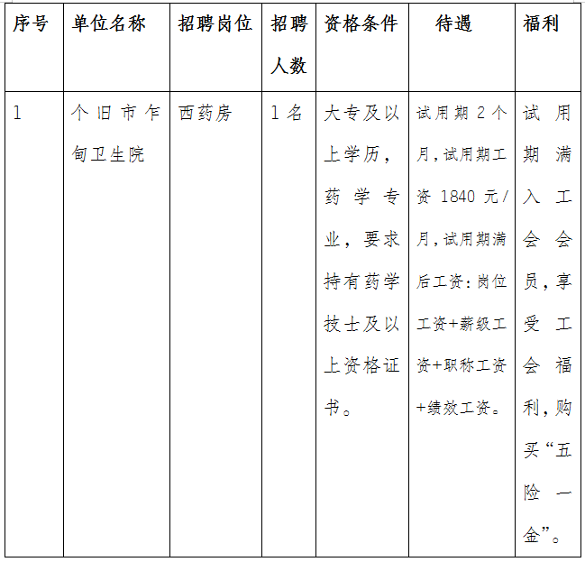 個舊市乍甸衛(wèi)生院招聘編外工作人員公告