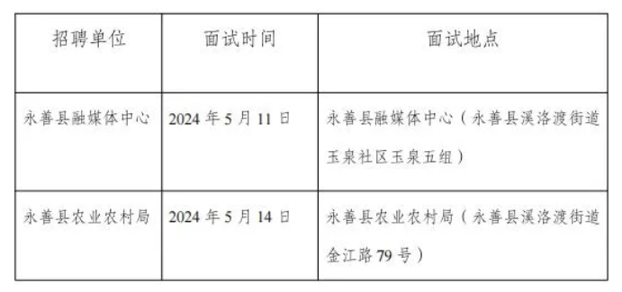 根據(jù)《昭通市2024年事業(yè)單位公開招聘優(yōu)秀緊缺專業(yè)技術(shù)人才實(shí)施辦法》和《昭通市永善縣2024年事業(yè)單位公開招聘優(yōu)秀緊缺專業(yè)技術(shù)人才通告》精神,現(xiàn)將永善縣2024年事業(yè)單位公開招聘優(yōu)秀緊缺專業(yè)技術(shù)人才面試有關(guān)事項(xiàng)通告如下: