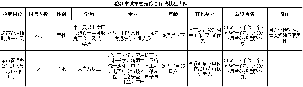 澄江市城市管理綜合行政執(zhí)法大隊(duì)公開(kāi)招聘城市管理輔助執(zhí)法人員招聘公告