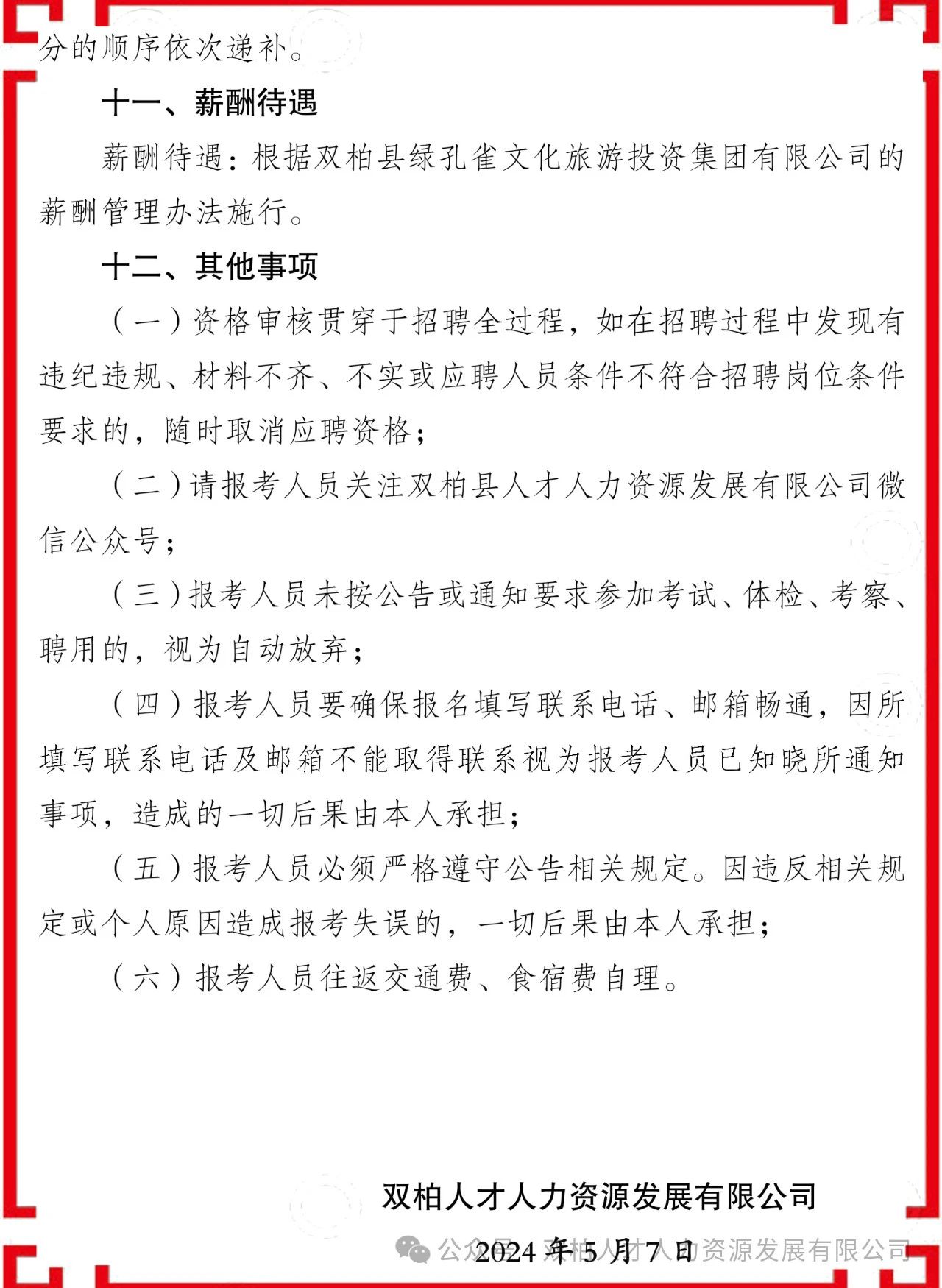 雙柏縣綠孔雀文化旅游投資集團(tuán)有限公司公開招聘勞務(wù)派遣制員工的公告