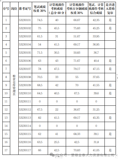 南華縣糧食儲(chǔ)備有限公司2024年公開招聘合同制職工筆試及計(jì)算機(jī)操作考核成績(jī)公示