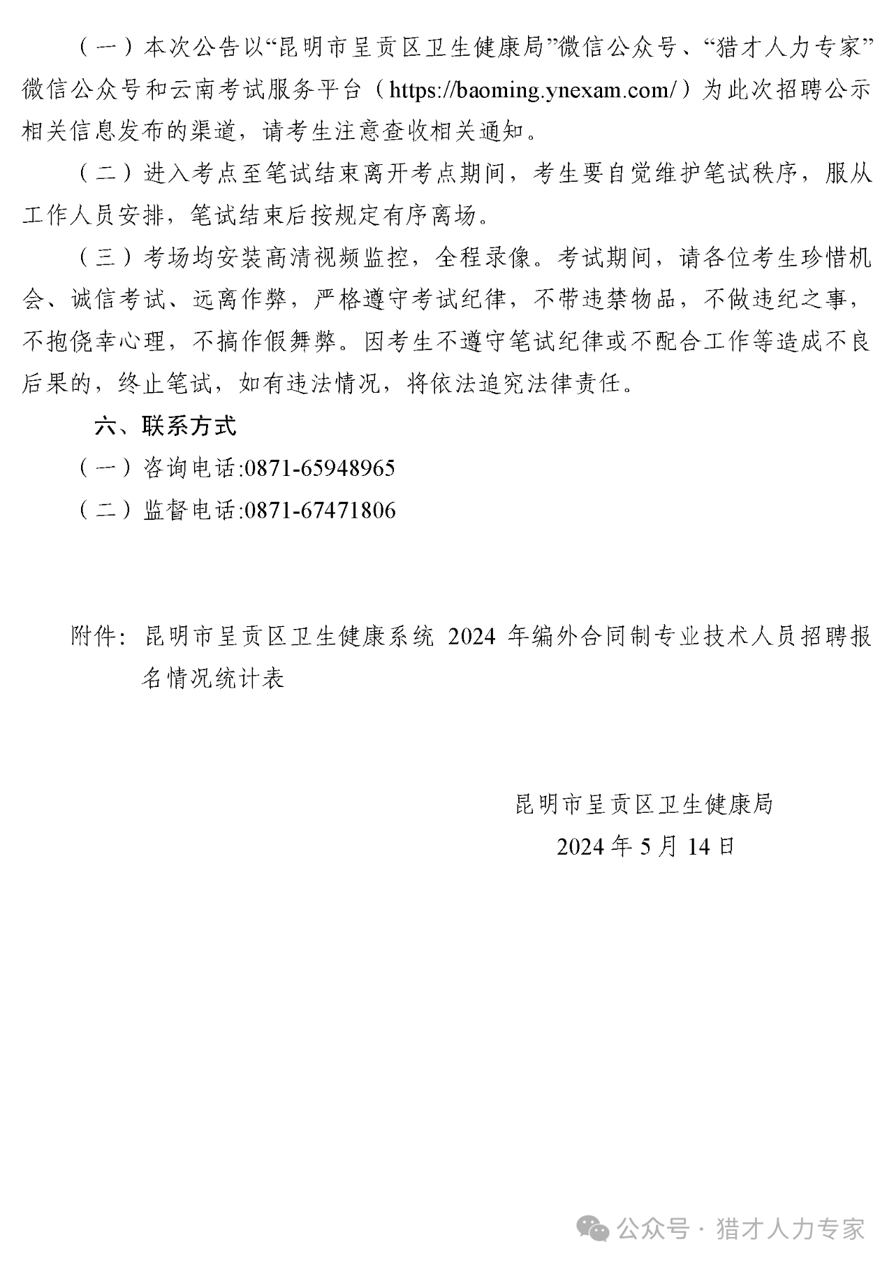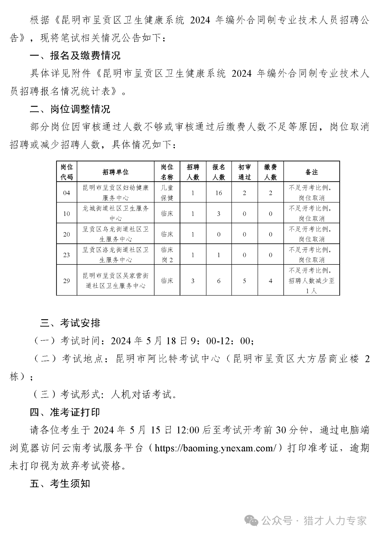 昆明市呈貢區(qū)衛(wèi)生健康系統(tǒng)2024年編外合同制專業(yè)技術(shù)人員筆試相關(guān)情況公告