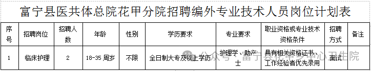 富寧縣醫(yī)共體總醫(yī)院花甲分院關(guān)于招聘編外專業(yè)技術(shù)人員的公告