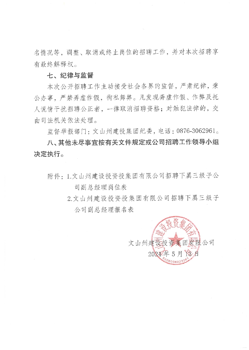 2024年文山州建設(shè)投資投集團(tuán)有限公司招聘下屬三級子公司副總經(jīng)理公告