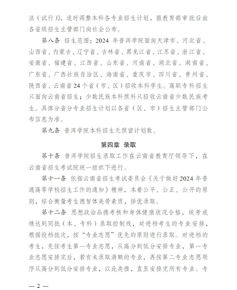 2024年普洱學(xué)院專升本招生專業(yè)信息表