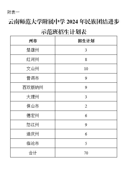 學(xué)校2024年面向我省民族區(qū)域自治州和邊境市招收少數(shù)民族應(yīng)屆初中畢業(yè)生70名(招生計(jì)劃見附表一)。