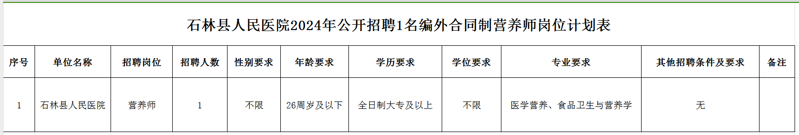 附件.石林縣人民醫(yī)院2024年公開招聘1名編外合同制營養(yǎng)師崗位計劃表