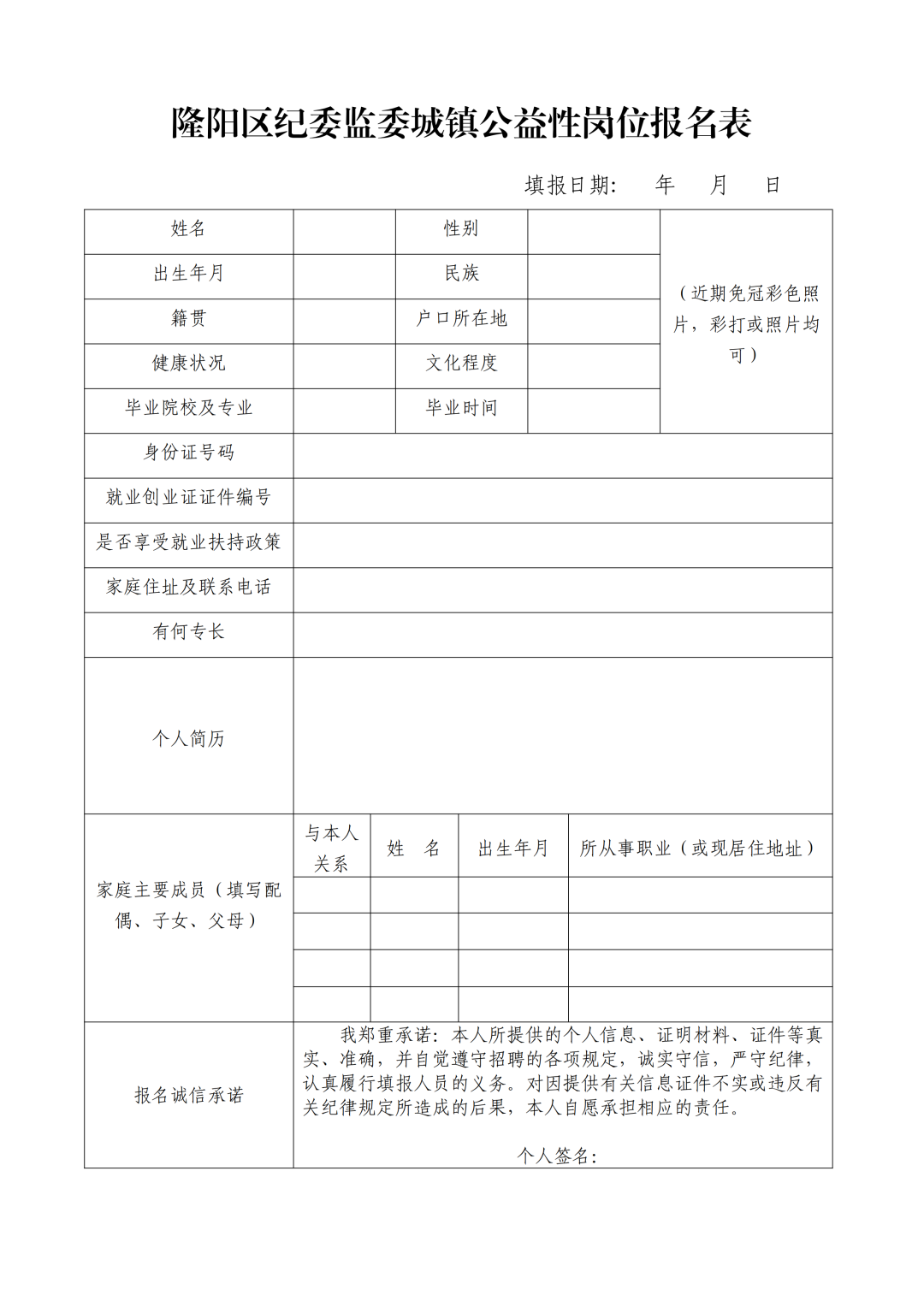 附件:隆陽區(qū)紀(jì)委監(jiān)委城鎮(zhèn)公益性崗位報名表