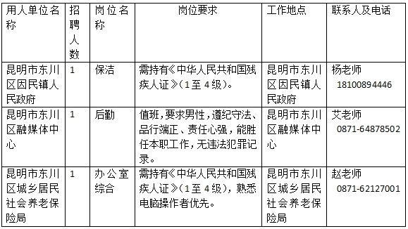 本次招聘公益性崗位3名,詳見《東川區(qū)公益性崗位招聘崗位表》。