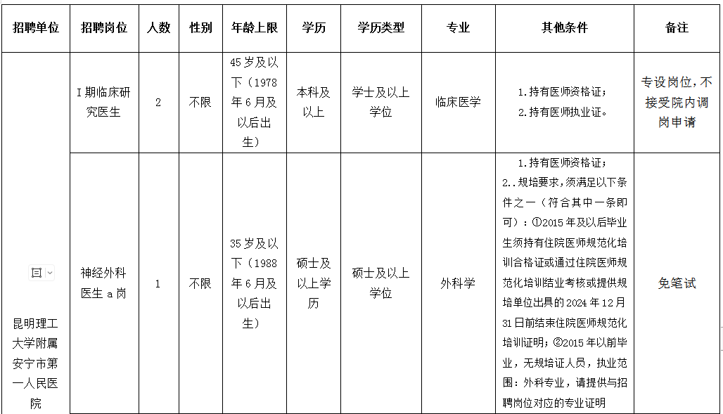 現(xiàn)因工作業(yè)務(wù)需要,醫(yī)共體下昆明理工大學(xué)附屬安寧市第一人民醫(yī)院和太平衛(wèi)生院面向社會招聘非事業(yè)編工作人員。