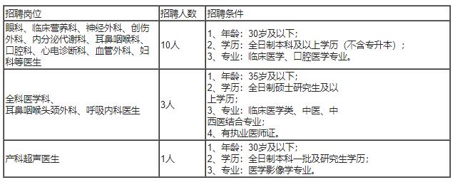 根據(jù)醫(yī)院業(yè)務(wù)發(fā)展需求,現(xiàn)需招聘編外醫(yī)生14人,具體招聘條件如下: