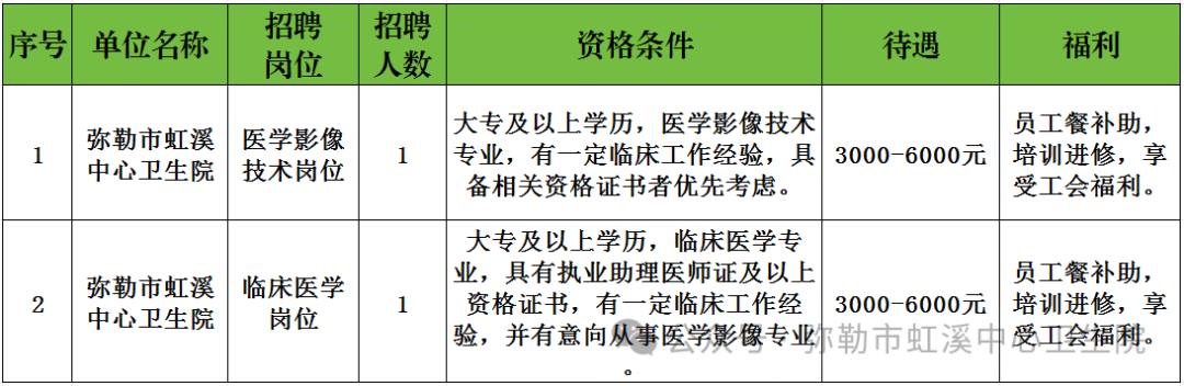 彌勒市虹溪中心衛(wèi)生院招聘編外專業(yè)技術人員公告