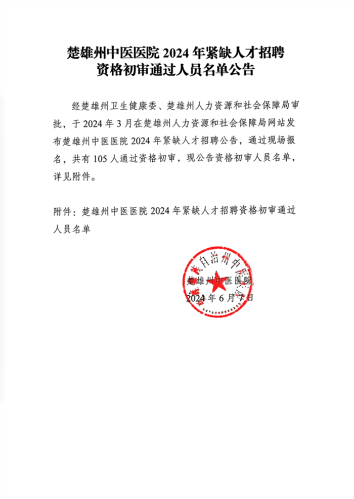 附件:楚雄州中醫(yī)醫(yī)院2024年緊缺人才招聘資格初審?fù)ㄟ^人員名單.xlsx