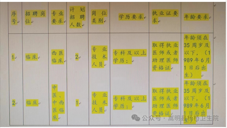 報名方式:采取現(xiàn)場報名的方式,公告發(fā)布在嵩明縣楊橋衛(wèi)生院微信公眾號。