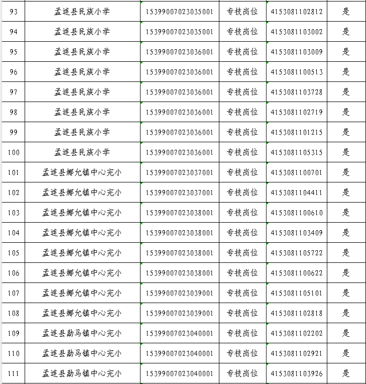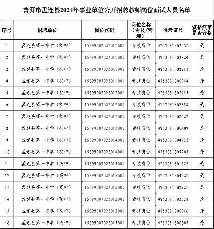 附件:普洱市孟連縣2024年事業(yè)單位公開(kāi)招聘教師崗位面試人員名單