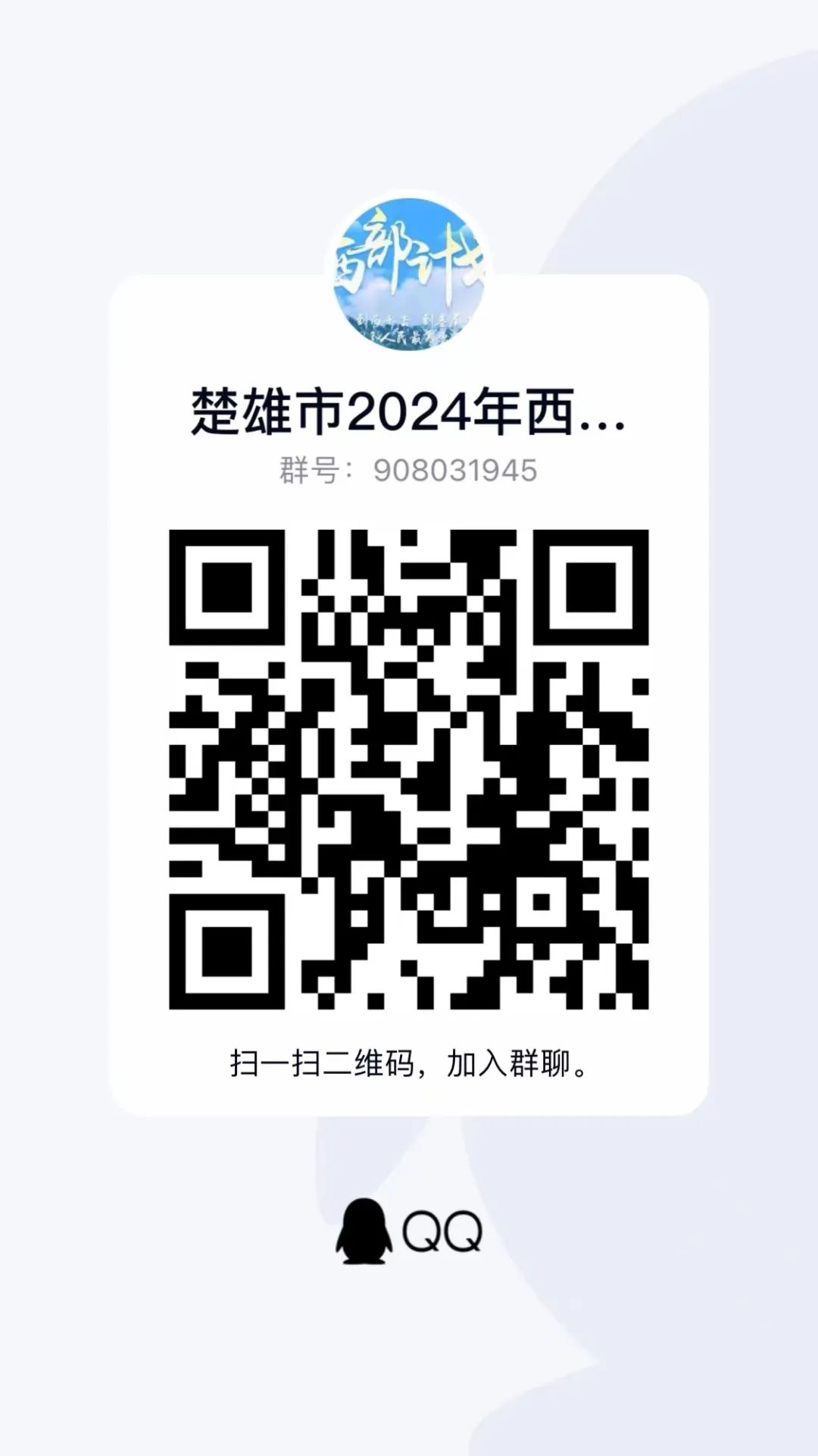 請(qǐng)成功報(bào)名并通過審核楚雄市2024—2025年度大學(xué)生志愿服務(wù)西部計(jì)劃地方項(xiàng)目的考生,掃描二維碼加入QQ群,并填寫驗(yàn)證信息“姓名+畢業(yè)學(xué)校”(請(qǐng)與報(bào)名信息保持一致),工作人員將進(jìn)行審核,筆試時(shí)間定于 6 月 22 日(星期六) 14:30—16:30,考試地點(diǎn)為東興中學(xué)體育館,具體筆試公告以“楚雄市共青團(tuán)”公眾號(hào)后續(xù)發(fā)布為準(zhǔn)。