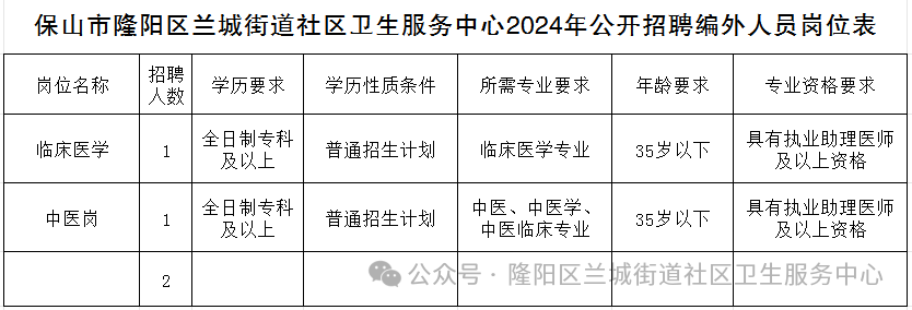 2024年6月16日在隆陽區(qū)蘭城街道社區(qū)衛(wèi)生服務(wù)中心微信公眾號(hào)發(fā)布招聘公告。