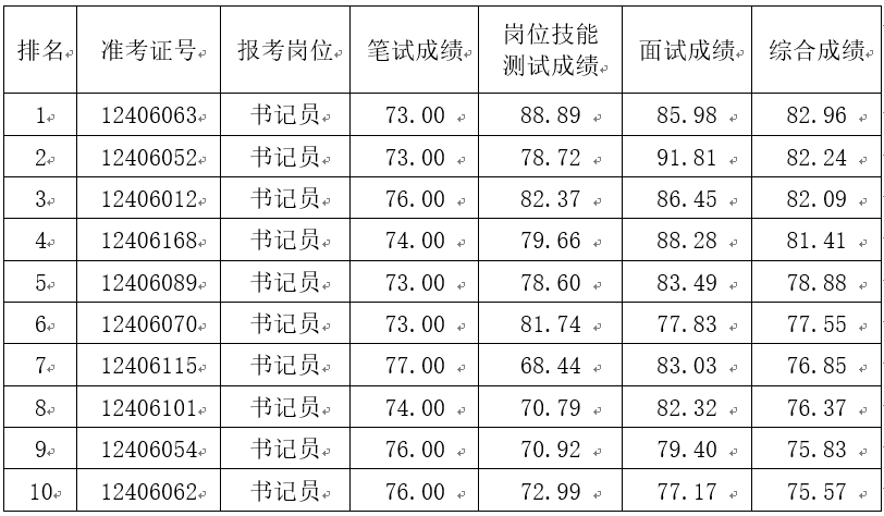 2024年聘用制、合同制書記員綜合成績(jī)公告