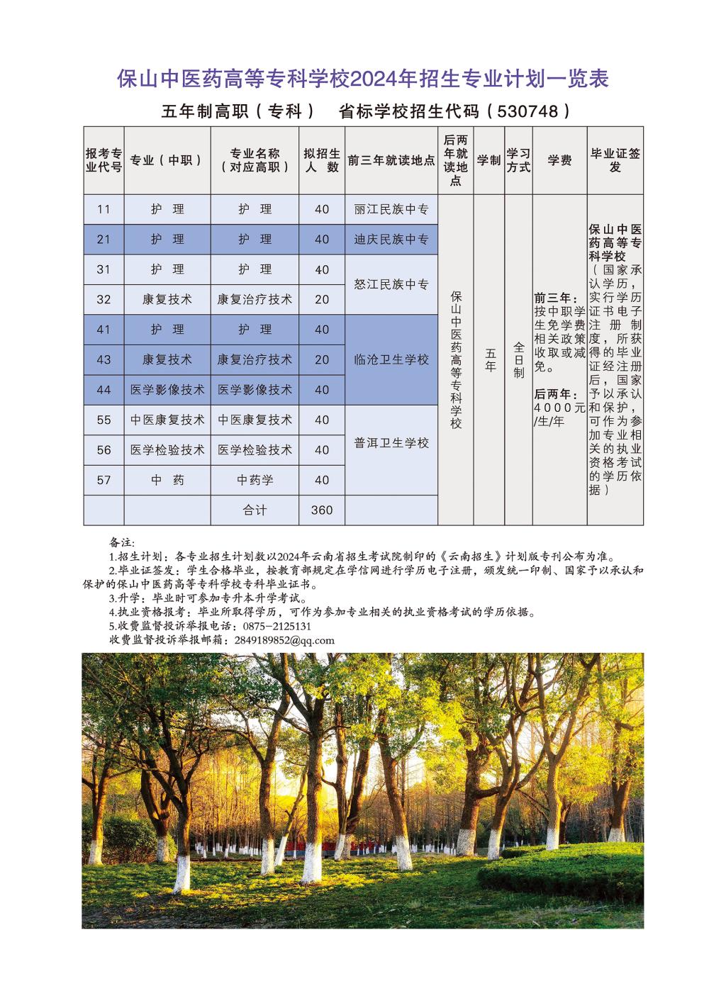 2024年保山中醫(yī)藥高等??茖W(xué)校招生計(jì)劃(五年制高職??疲?/h1>