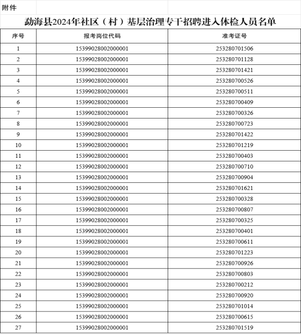 根據(jù)《云南省2024年社區(qū)(村)基層治理專干招聘工作實施方案》及有關(guān)工作安排,現(xiàn)將勐??h2024年社區(qū)(村)基層治理專干體檢安排通知如下: