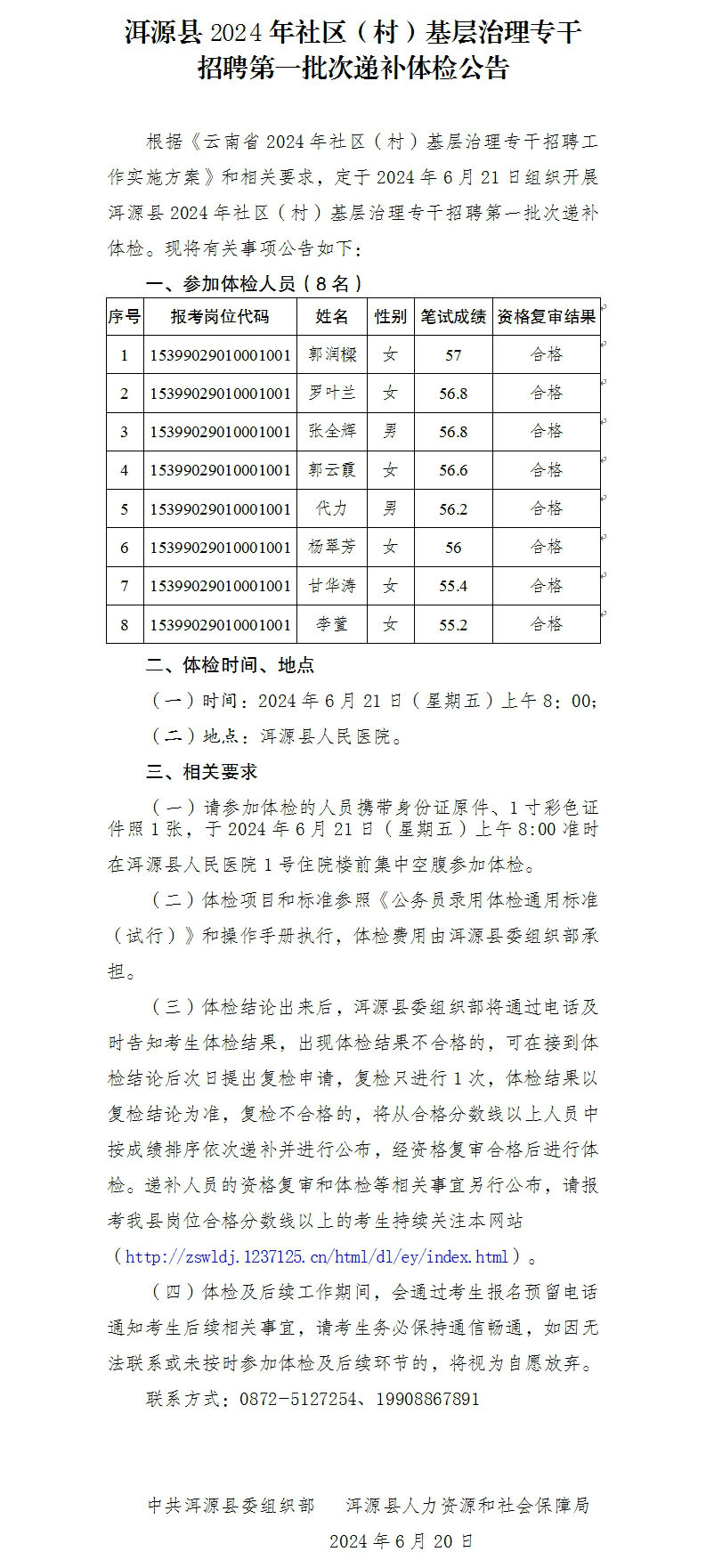 洱源縣2024年社區(qū)(村)基層治理專干招聘 第一批次遞補(bǔ)體檢公告