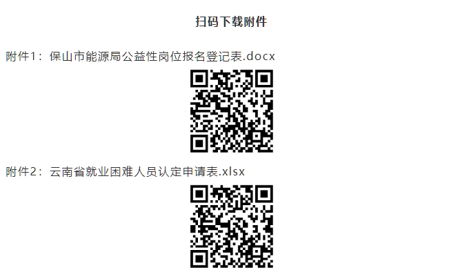 (三)報(bào)名時(shí)間和方式:自公告發(fā)布之日起至7月10日24︰00結(jié)束(以接收郵件時(shí)間計(jì)算)。報(bào)名采取網(wǎng)絡(luò)報(bào)名方式進(jìn)行,報(bào)名時(shí)需填寫《保山市能源局公益性崗位報(bào)名表》(見附件1),并提供本人居民身份證、戶口本、畢業(yè)證、《云南省就業(yè)困難人員認(rèn)定申請表》(附件2)、《就業(yè)創(chuàng)業(yè)證》或《就業(yè)失業(yè)登記證》等PDF格式掃描件,屬于殘疾人的還需提供《殘疾人證》(第三代)掃描件,并將報(bào)名表(含可編輯版)和掃描件發(fā)至郵箱:bssfgwnyk@163.com。聯(lián)系電話:0875—3067988,13987528618(李老師)。