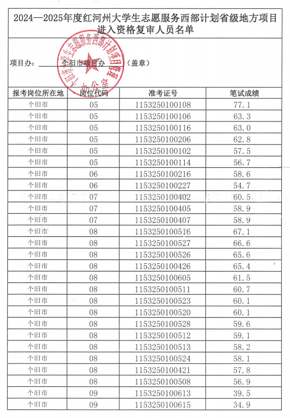 (二)因資格復(fù)審、體檢、考察不合格出現(xiàn)遞補(bǔ)的,遞補(bǔ)人員名單、資格復(fù)審、體檢等后續(xù)工作個(gè)舊市項(xiàng)目辦將另行通知。