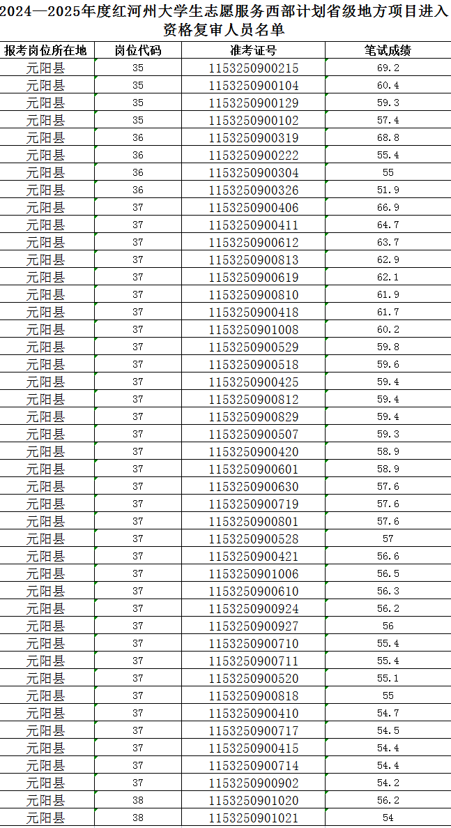根據(jù)《2024—2025年度紅河州大學(xué)生志愿服務(wù)西部計劃省級地方項目志愿者招募公告》,現(xiàn)將紅河州大學(xué)生志愿服務(wù)西部計劃筆試成績、資格復(fù)審及面試有關(guān)事項公告如下。