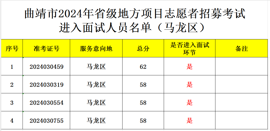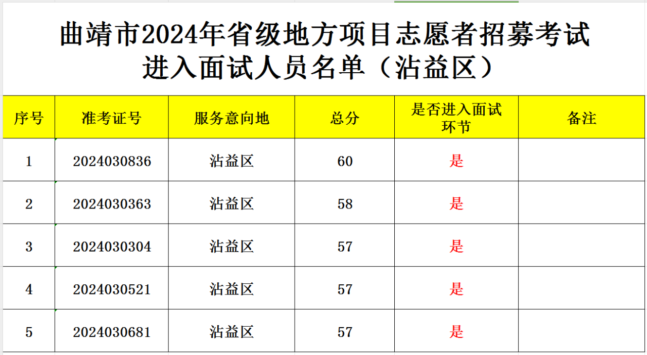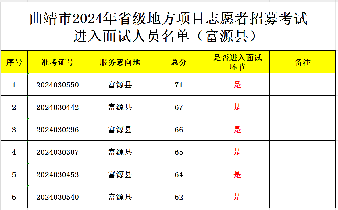 根據(jù)云南省項(xiàng)目辦《關(guān)于做好2024—2025年度云南省大學(xué)生志愿服務(wù)西部計(jì)劃地方項(xiàng)目志愿者招募派遣工作的通知》精神及《2024年西部計(jì)劃云南省地方項(xiàng)目志愿者招募公告》《云南省曲靖市關(guān)于2024年大學(xué)生志愿服務(wù)西部計(jì)劃地方項(xiàng)目志愿者招募的公告》有關(guān)規(guī)定和要求,經(jīng)曲靖市富源縣、沾益區(qū)、馬龍區(qū)大學(xué)生志愿服務(wù)西部計(jì)劃項(xiàng)目管理辦公室研究決定,現(xiàn)將面試有關(guān)事項(xiàng)公告如下。