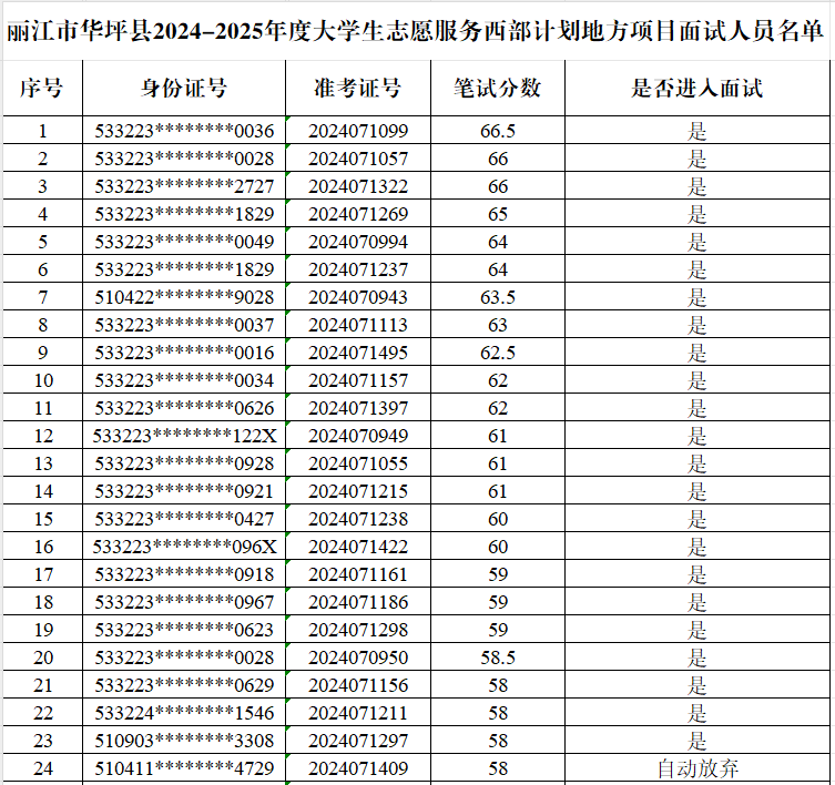 附件:麗江市華坪縣2024--2025年度大學(xué)生志愿服務(wù)西部計(jì)劃地方項(xiàng)目面試人員名單
