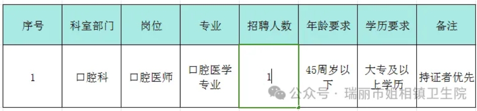 瑞麗市姐相鎮(zhèn)衛(wèi)生院口腔科醫(yī)師招聘公告