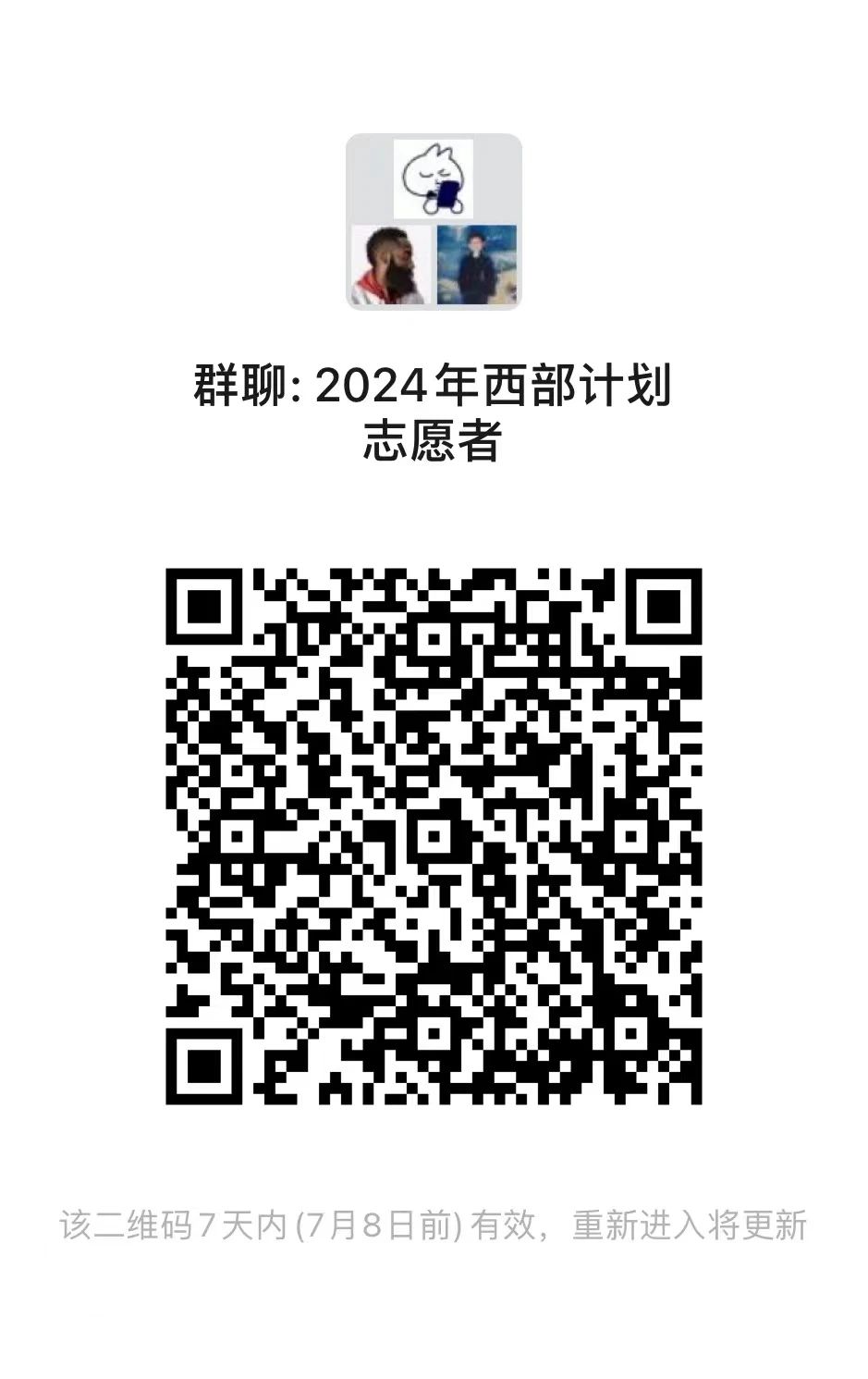 為方便考生及時(shí)獲取相關(guān)通知事宜,請(qǐng)擬進(jìn)入體檢人員掃碼加入“2024年西部計(jì)劃志愿者”微信群
