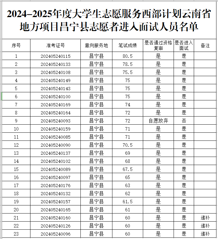 根據《共青團云南省委、省教育廳、省財政廳、省人力資源和社會保障廳關于印發(fā)<2024-2025年度云南省大學生志愿服務西部計劃實施方案>的通知》(云青聯〔2024〕11號)規(guī)定, 現將進入面試人員名單及相關事項進行通知: