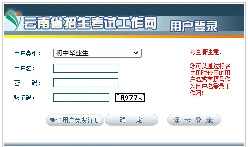 登錄云南省初中升高中管理系統(tǒng)(http://csgx.ynjy.cn/login),用戶名為考生14位學(xué)籍號,初始密碼為學(xué)籍號的后8位,首次登錄后必須修改密碼,按系統(tǒng)提示進(jìn)行操作。具體操作方式詳見《云南省初中升高中招生管理系統(tǒng)使用說明(考生)》(附件1)。