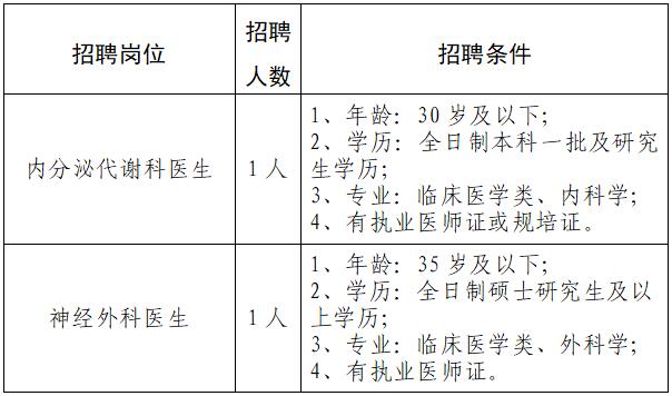 根據(jù)醫(yī)院業(yè)務(wù)發(fā)展需求,現(xiàn)需招聘編外醫(yī)生2人,具體招聘條件如下: