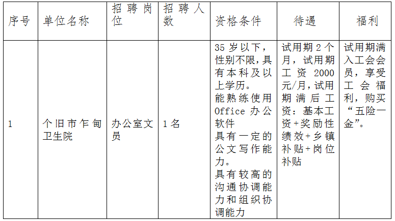 個舊市醫(yī)療衛(wèi)生共同體乍甸分院招聘編外工作人員公告