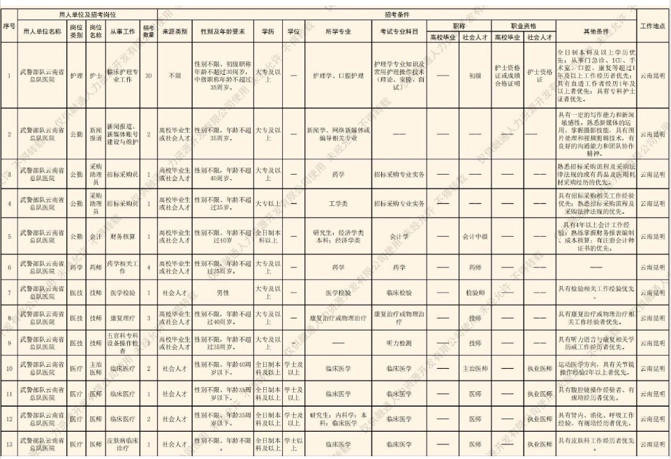 武警云南總隊(duì)醫(yī)院2024年社會(huì)聘用人員招聘公告